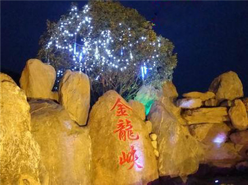 簡介—— 陜西蘭光戶外照明有限公司為西安市金龍峽景區(qū)設計安裝的噴泉亮化工程效果展示照片