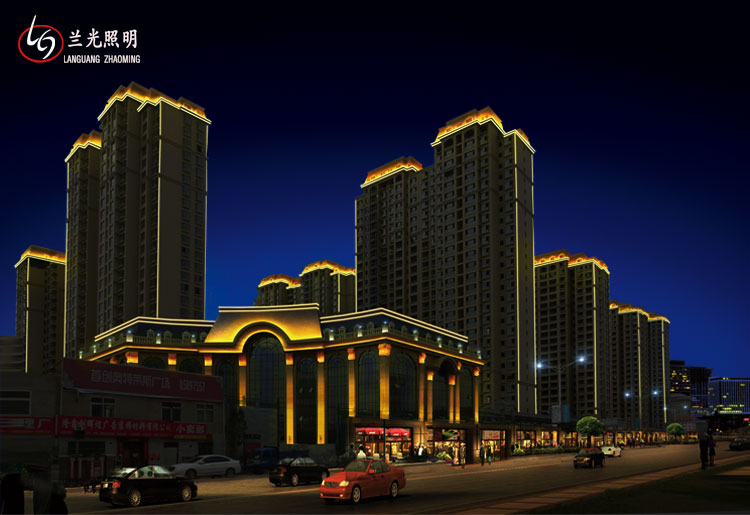 西安潤天磬園辦公樓,呈垂直方向聳立在西安高新區(qū),建筑立面大面積采用白色點光源來體現(xiàn)出皓月星空的科技感,墻面部分用色溫4300K金鹵泛光燈來補充渲染,整體體現(xiàn)出建筑的莊嚴(yán)大方。