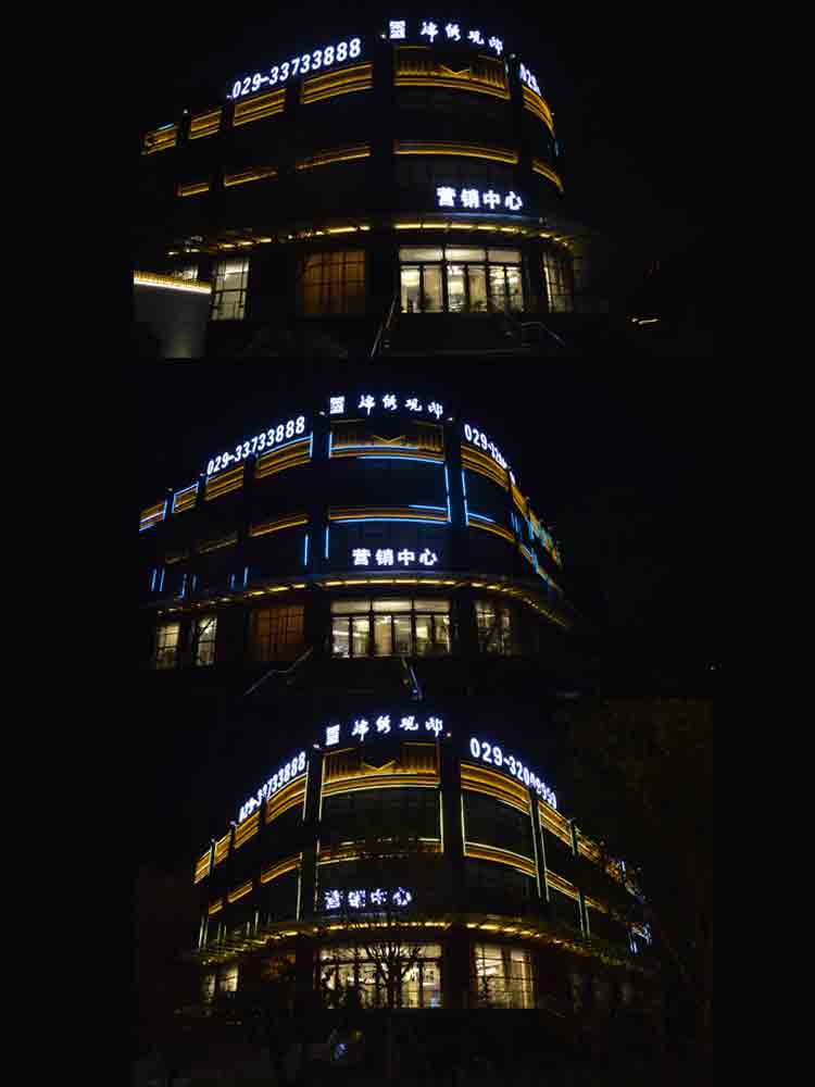 2018 榮盛景秀觀邸售樓部亮化,蘭光設計師根據(jù)其榮盛景秀觀邸售樓部商業(yè)屬性,商業(yè)照明設計明亮而醒目,營造商業(yè)經(jīng)營的夜景氛圍。以靜態(tài)的暖色燈光將其打亮,凸顯雅致。“榮盛景秀觀邸”標志以高亮度的燈光,吸引顧客注意,增強商業(yè)宣傳力度。景觀燈造型與建筑外立面造型完美融合,晚上光斑效果與綠植景觀交相輝映,相映成趣!榮盛景秀觀邸的亮化設計施工,獲得了客戶的高度認可。