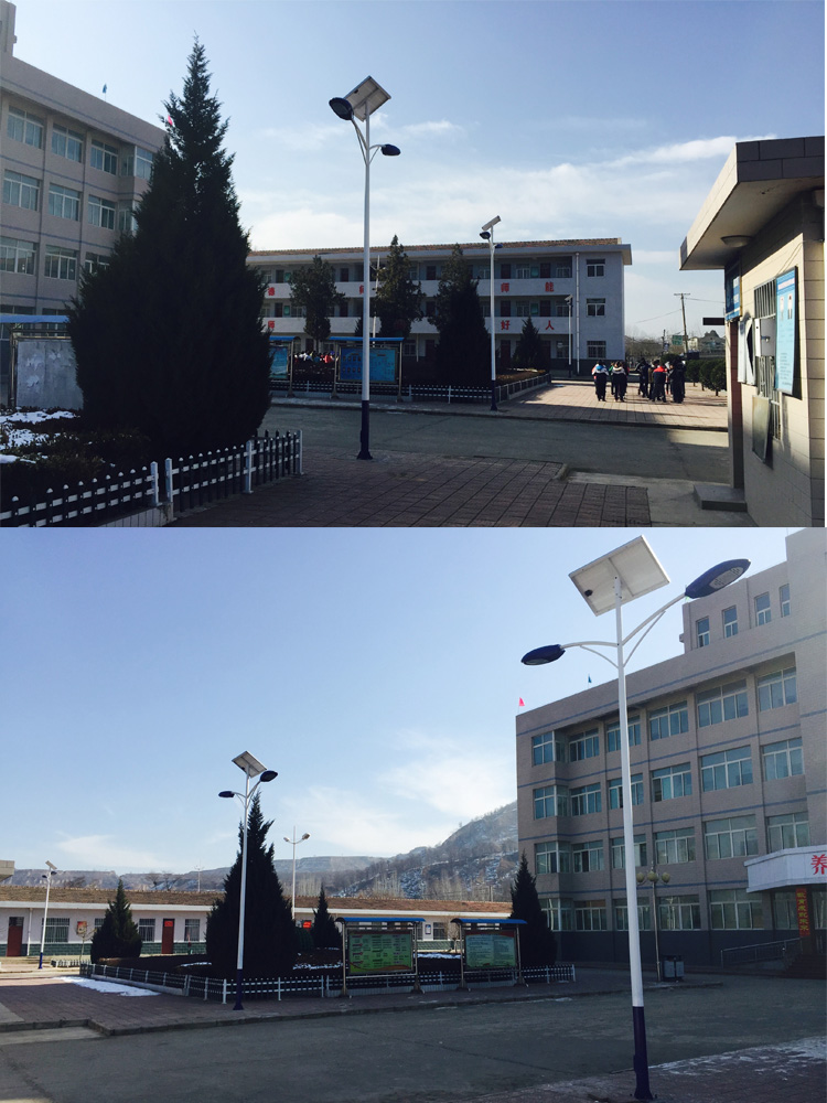 簡介—— 甘肅省平?jīng)鍪袑W(xué)校路燈工程,采購的是我蘭光照明單板雙頭太陽能路燈,甘肅的冬季天黑的比較早,為了給校園操場提供照明路燈,安裝節(jié)能型的太陽能路燈,在學(xué)校的操場和道路上安裝,給同學(xué)們提供夜間照明。